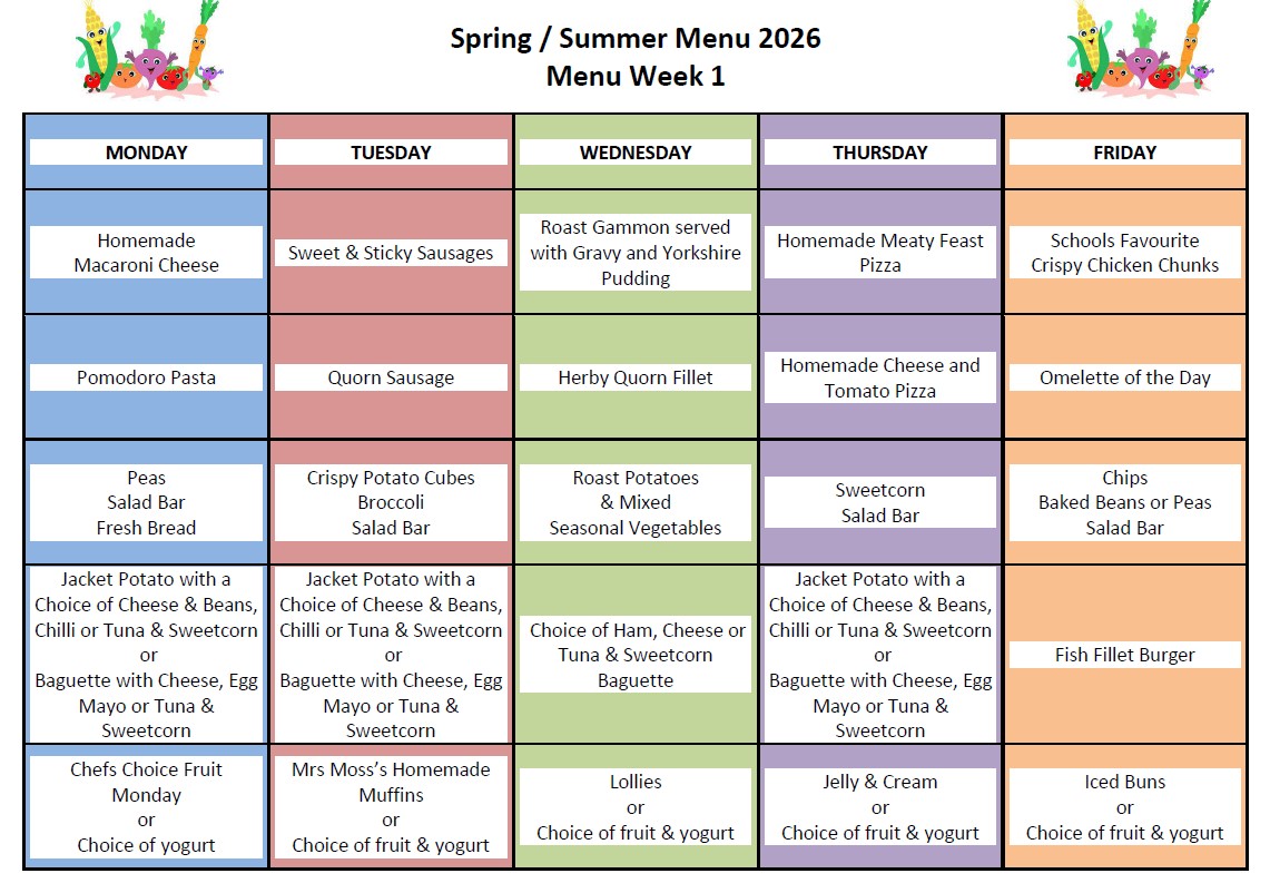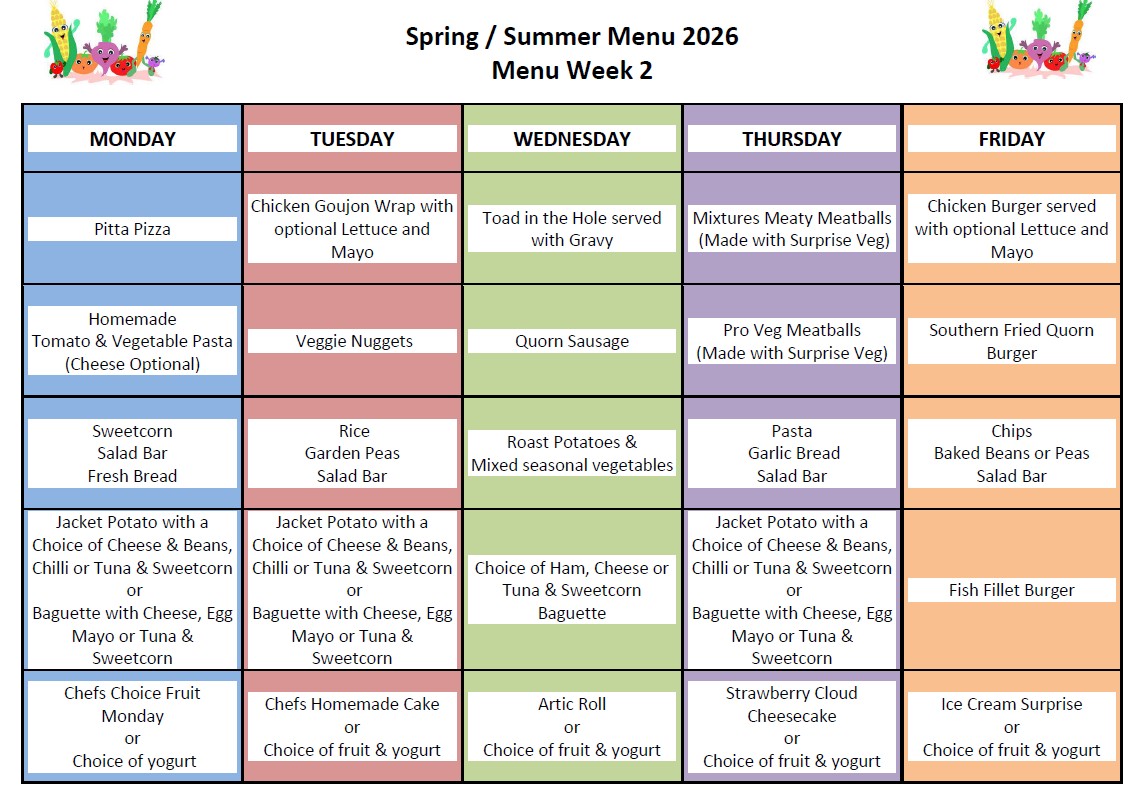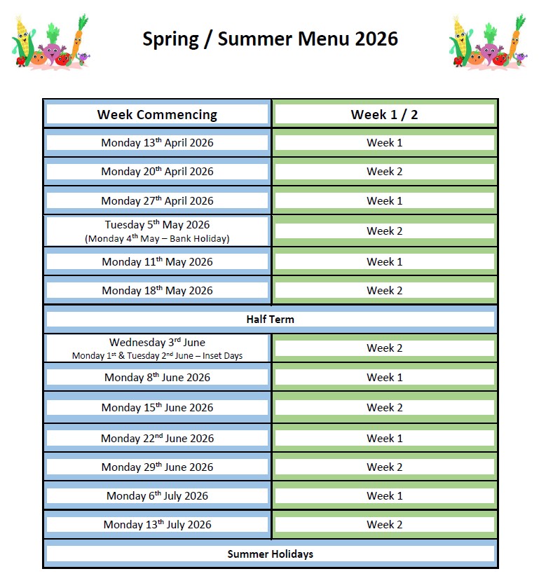 The below menus will commence from 13th April 2026. They are on a 2 weekly rotation, please see below for details of weeks and dates.